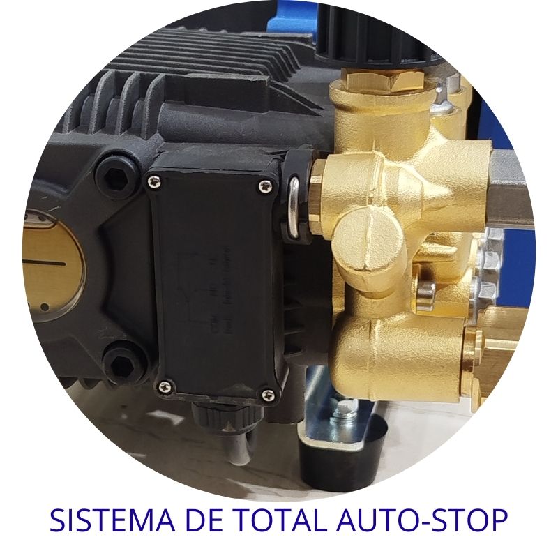 • Esta hidrolavadora está equipada con el Sistema Total Stop, un sistema que apaga automáticamente la máquina cuando se suelta el gatillo de la pistola, ahorrando energía y aumentando la vida útil de la máquina.