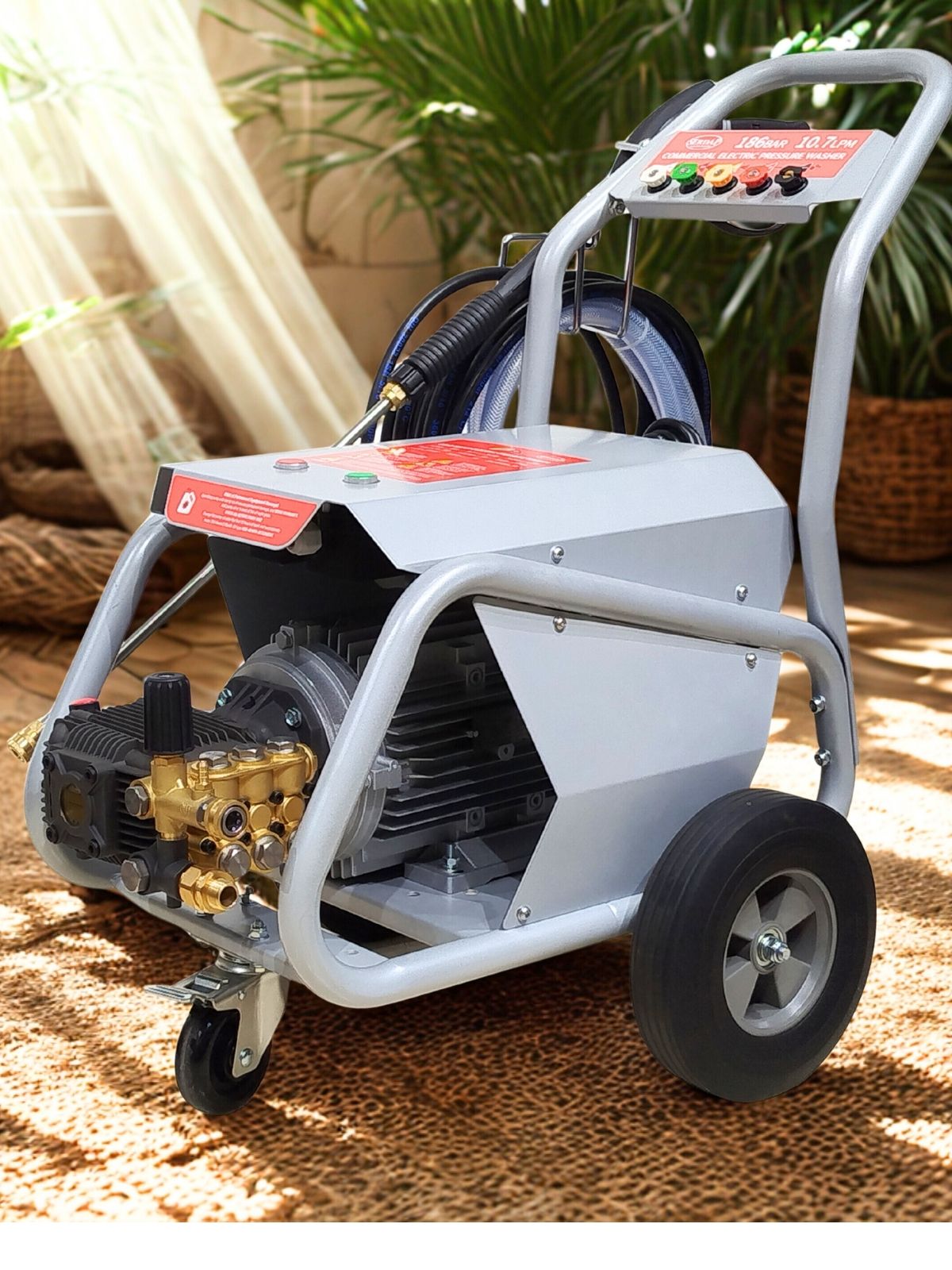 Hidrolavadora eléctrica para uso profesional, ideal para limpieza en construcciones, áreas comunes en unidades residenciales, lavaderos de autos y motos, contenedores, caballerizas, corrales, bodegas, entre otros.